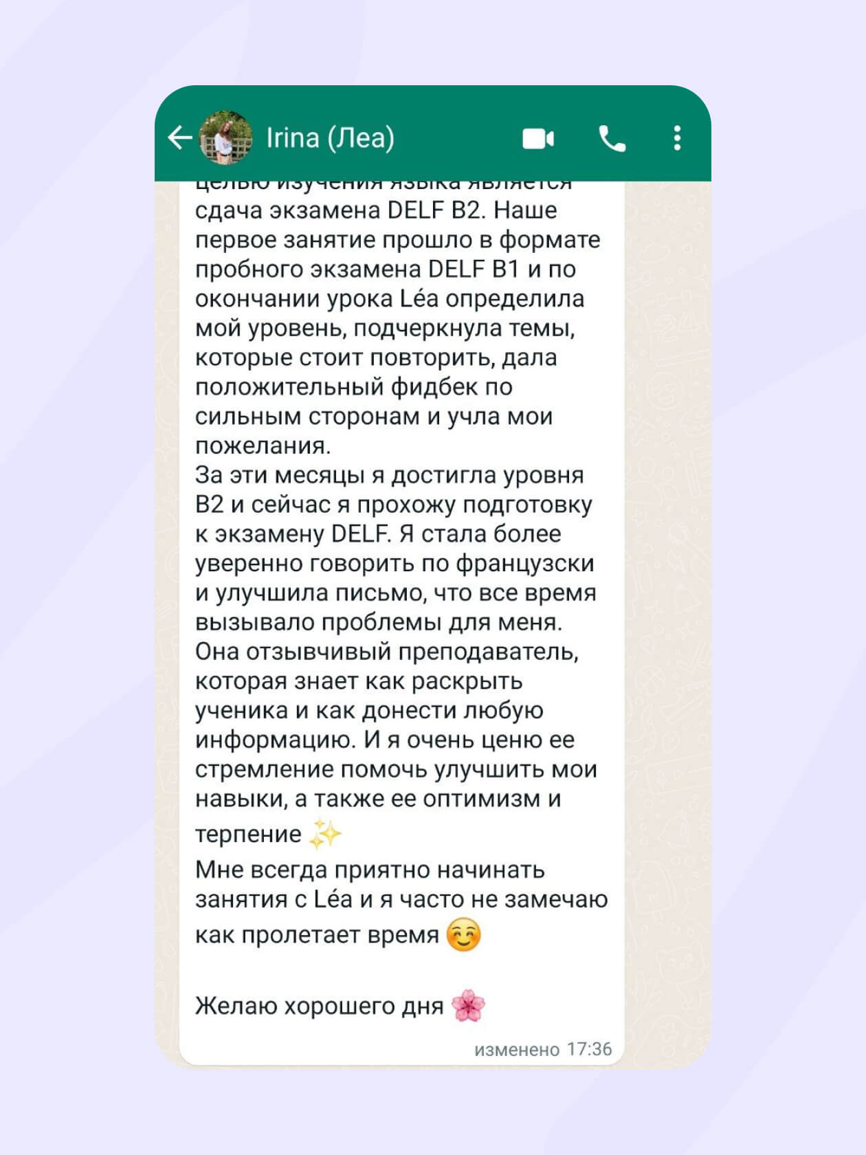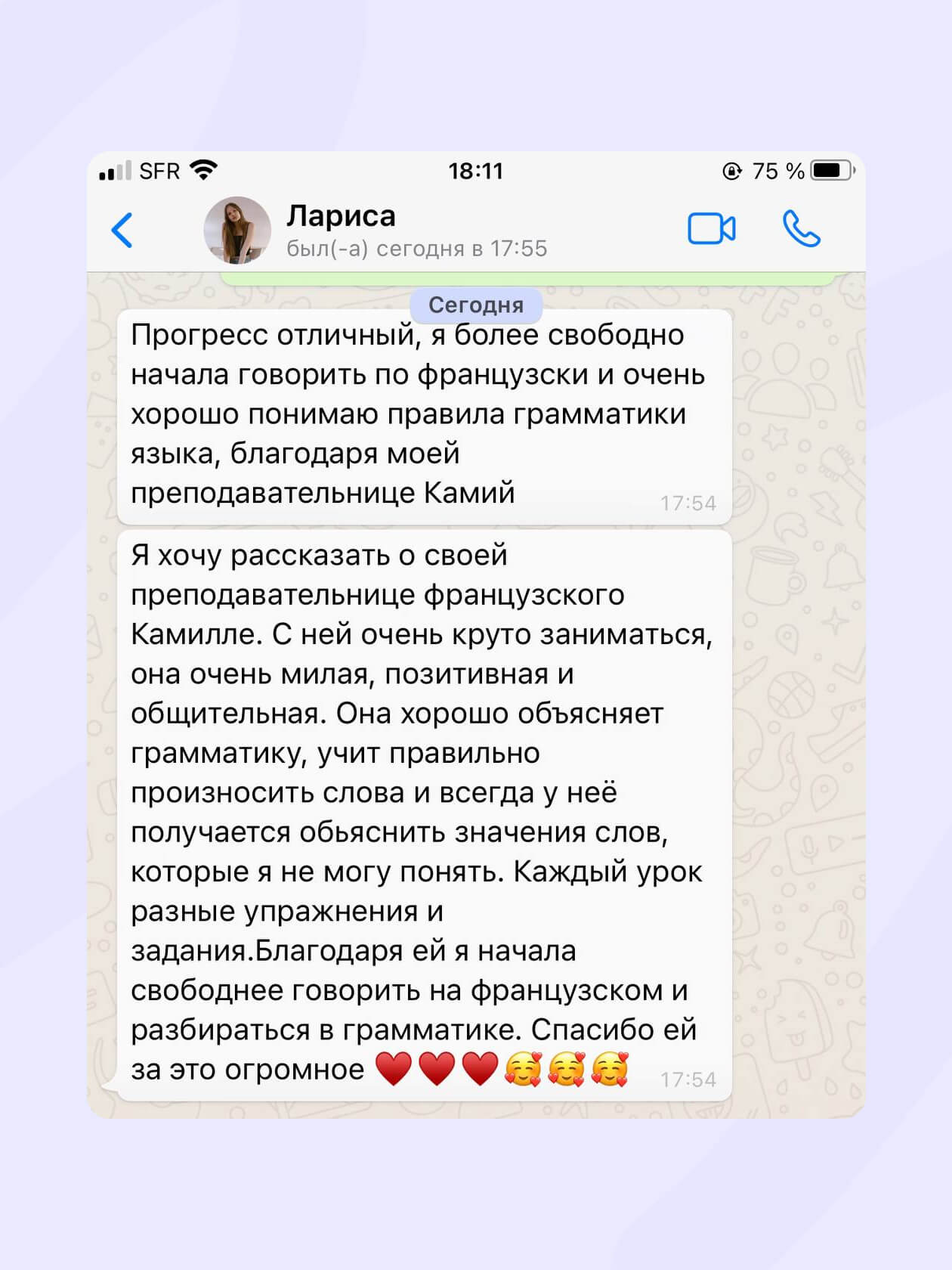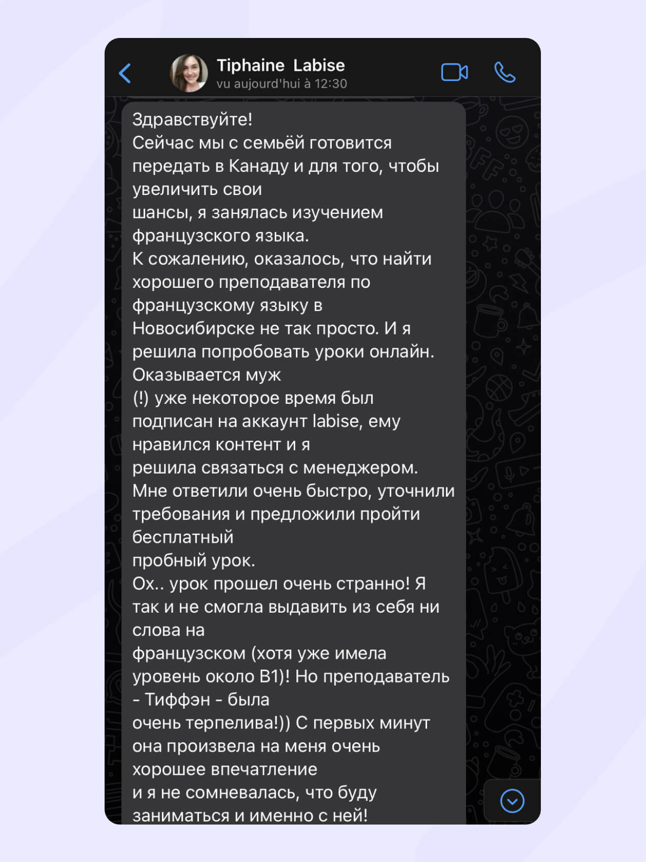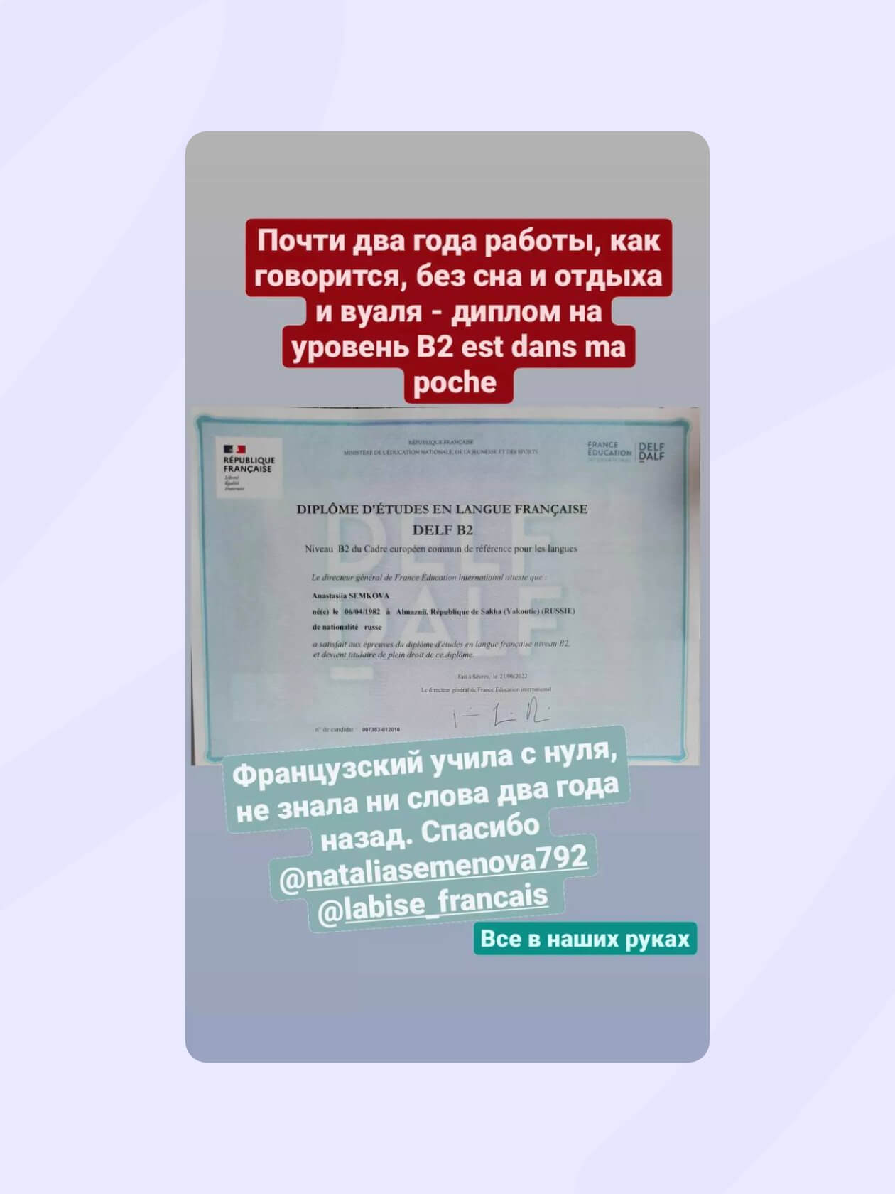 Планируете обучение во Франции и не знаете, с чего начать? Консультация по поступлению во Францию от нашей онлайн-школы французского языка Labise поможет вам разобраться во всех нюансах, избежать распространенных ошибок и подготовиться к поступлению уверенно и грамотно. Услуги нашей школы включают профессиональную помощь куратора, который даст развернутые рекомендации по каждому этапу поступления и ответит на все важные вопросы.