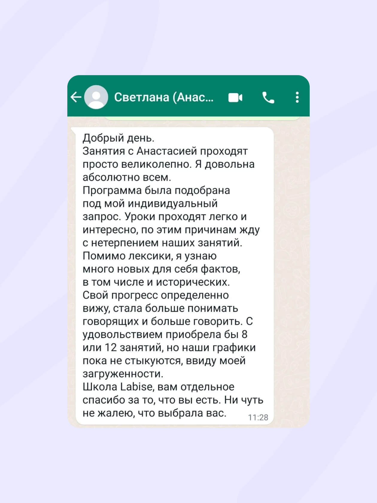1. Индивидуальный подход: наш куратор подробно разбирает ваш случай, учитывая уровень подготовки, языковые навыки и личные цели.