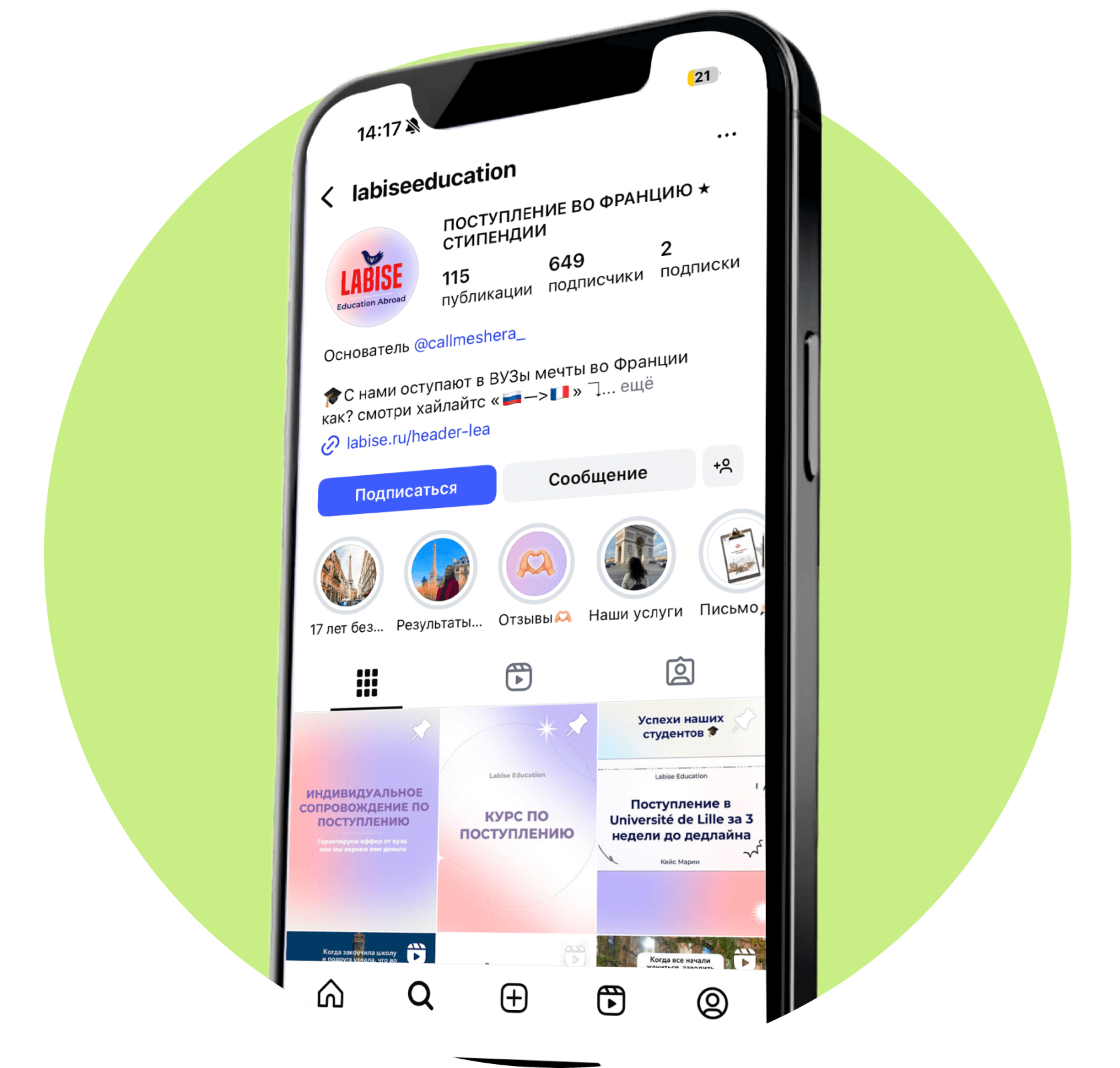 Высшее образование во Франции – это не только инвестиция в знания, но и шаг к построению успешной карьеры. Запишитесь на бесплатную вводную консультацию и начните подготовку уже сейчас. Labise поможет вам пройти весь путь с уверенностью и профессиональной поддержкой.